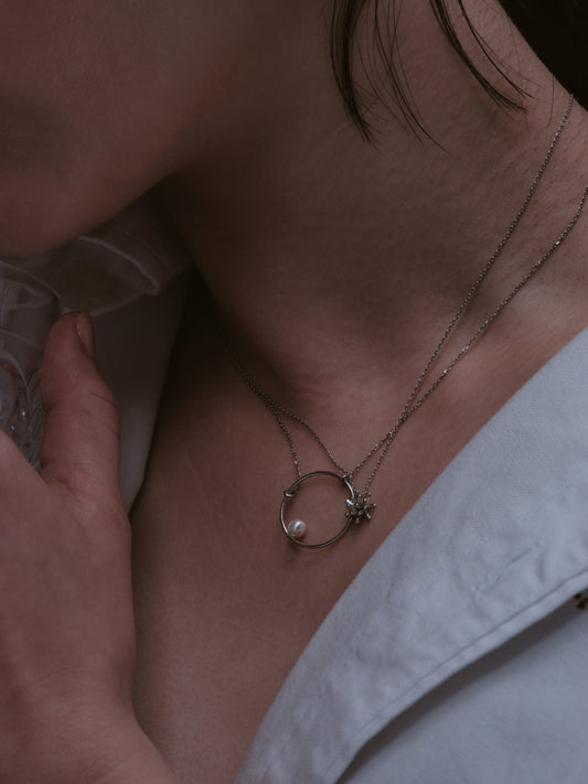 Pearl in circle silver necklace
